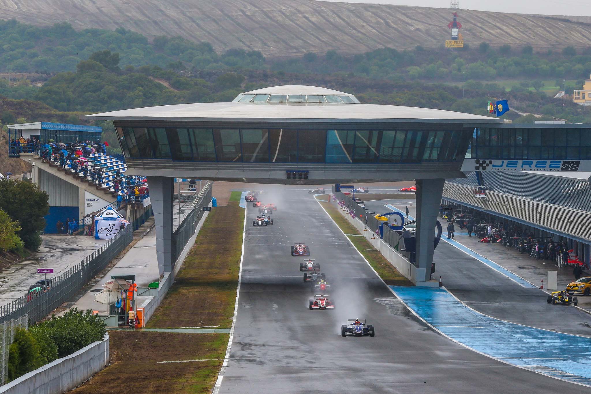 JEREZ (ESP) OCT 16-18 2015 – Final round of the World Series by Renault at Circuito Permanente de Jerez. Jack Aitken #3 Koiranen GP, leads at the start of Race 1. Action. © 2015 Diederik van der Laan / Dutch Photo Agency / LAT Photographic